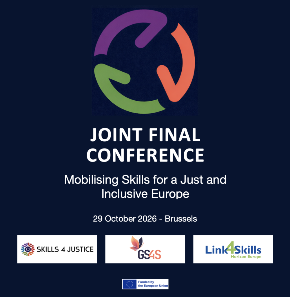 On 29 October 2026, three Horizon Europe projects — GS4S, Link4Skills and Skills4Justice — will come together in Brussels for a joint final conference addressing one of Europe’s most pressing policy challenges: how to respond effectively to skills shortages in a rapidly changing global and economic context.